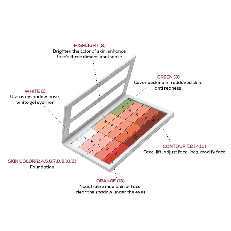 –  Contains 15 shades of HD Cream